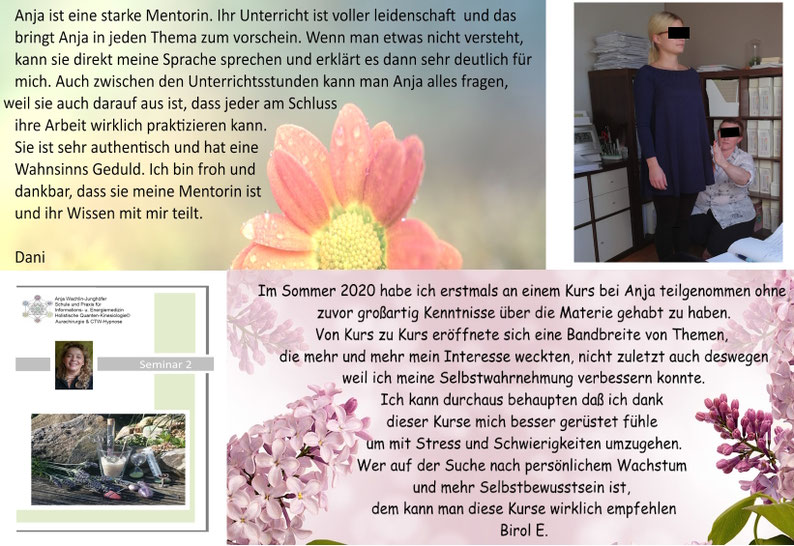 Du lernst eine Kombination Aurachirurgie, Karmische Diagnostik und Germanische Heilkunde©, verbunden mit Frequenzmedizin, Rückführungen, TCM, die Psychologie der Chakren und Meridiane und noch anderen energetischen Techniken. Alles zusammen ist einfach ideal um die Ursachen zu erkennen und zu löschen.