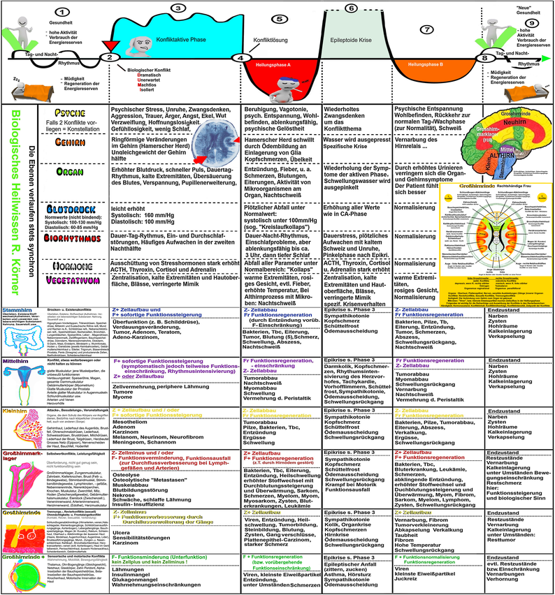 Das Biologische Heilwissen, in Anlehnung an die "Germanische Heilkunde©" kennt seit ca. 45 Jahren die biologischen Programme von ca. 500 Erkrankungen und deren "Krankheits- und Heilungsverläufe", die in unserem Körper vollautomatisch ablaufen, wenn wir eine Krisensituation durchleben. Die Heilungsverläufe sind immer identisch, reproduzierbar.